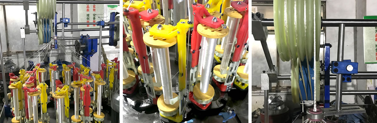 The high speed braiding machine we produce are commonly used to braid many kinds of both round and flat ropes/cords/ laces ( tow ropes, luggage ropes, decoration ropes, aerial ropes, etc) and high pressure rubber hoses.